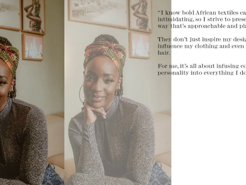 I’m Sarah, and I’ve been an FF&E designer for six years. I founded Wrapped By Sarah in 2018, initially focusing on head wraps before expanding into home furnishings. The goal of our head wraps is to empower women by helping them express their individuality, while our home products embrace sustainability and bold African textiles and prints, turning fabric offcuts into unique cushions and lampshades.