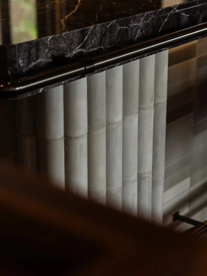 China House takes its cues from the Straits Eclectic architectural style, blending historical references with subtle Art Deco influences. The layout draws from traditional Malaysian shophouses, where screens provided ventilation and visual connection between private and public spaces. Here, screens are used to define zones while maintaining openness, becoming sculptural features that introduce pattern, texture and craft.