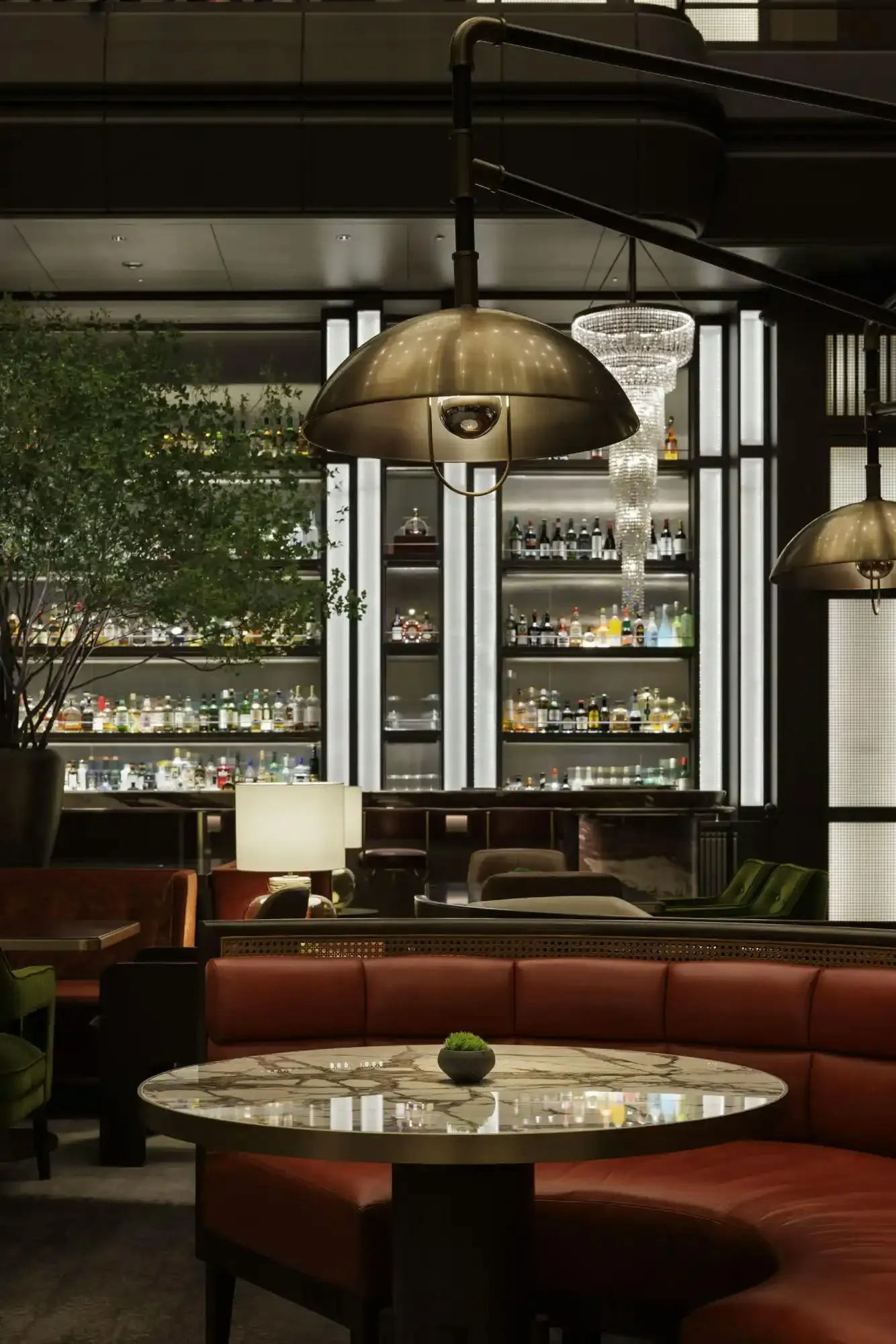Shinjuku Station, the busiest railway hub in the world, provided a powerful point of inspiration. Its constant movement and cadence informed the introduction of a central clock tower, conceived as the heartbeat of the lobby lounge. Integrated into the existing structure, the clock is framed by panelling and a bespoke bar, anchoring the space and drawing the eye.